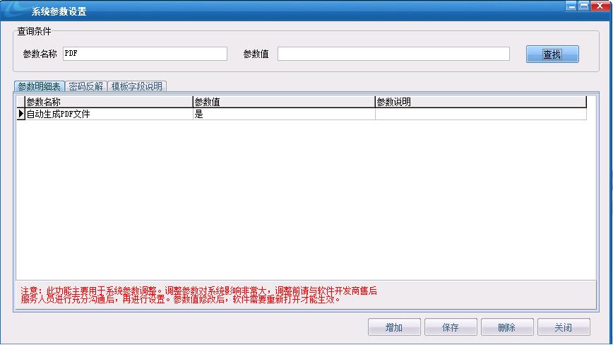 1、在【系統設置】中【系統參數設置】找到【自動生成PDF文件】,將參數值修改成【是】