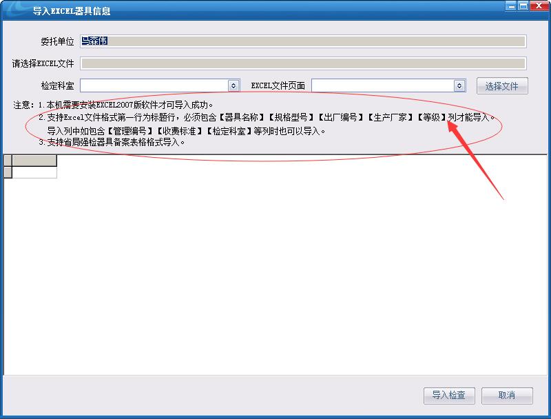 可以參照2014河南省計(jì)量處提供的強(qiáng)制檢定器具備案表格式,讓企業(yè)填寫后,系統(tǒng)可以直接導(dǎo)入(格式不能變化,按原表格進(jìn)行登記)